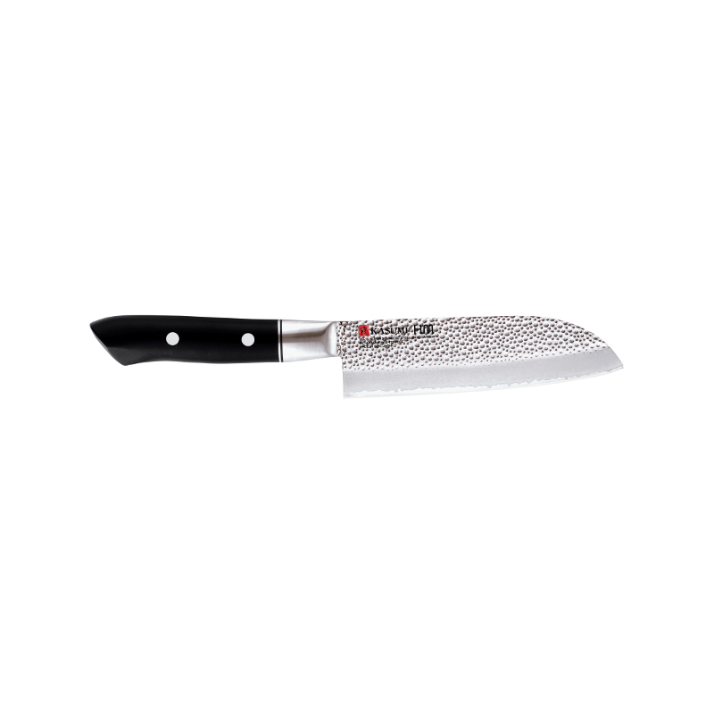 Nože KASUMI HM. Tvrdost 59-60 HRC. Jsou tvrzeny tlakem 300 tun. Kování dělá ocel tvrdší a nepřilnavou.
