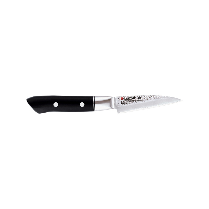 Nože KASUMI HM. Tvrdost 59-60 HRC. Jsou tvrzeny tlakem 300 tun. Kování dělá ocel tvrdší a nepřilnavou.