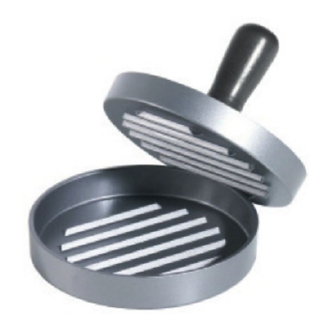 Průměr: 115 mm, výška: 80 mm. Aluminiové provedení s plastovou rukojetí.
