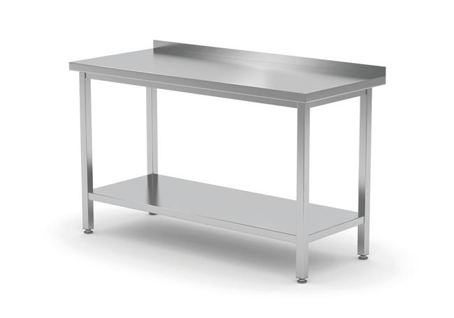 - Nástěnný stůl s policí – přišroubovaný, hloubka 600 mm, HENDI, Kitchen Line, 1000x600x(H)850mm