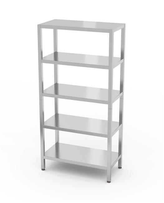 - Šroubovaný regál, 5 polic, baleno v kartonu, sklopné nohy, HENDI, 900x450x(H)1800mm