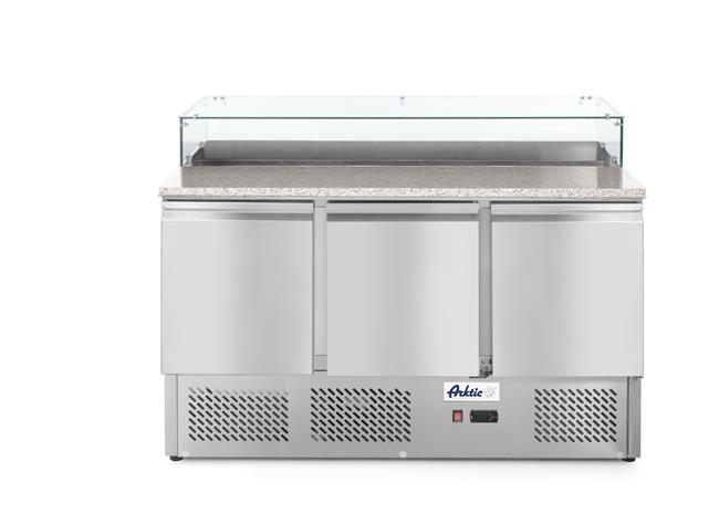 - Třídveřový chladicí stůl se skleněným nástavcem a žulovou deskou, Arktic, 230V/310W, 1378x702x(H)1155mm